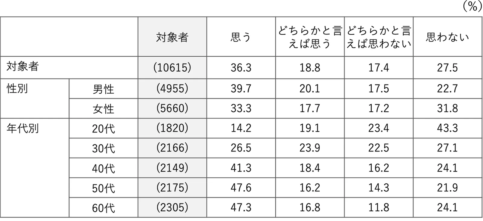 それぞれの尺度や感じ方は年齢や性別によって変化していくものでもあるようです。